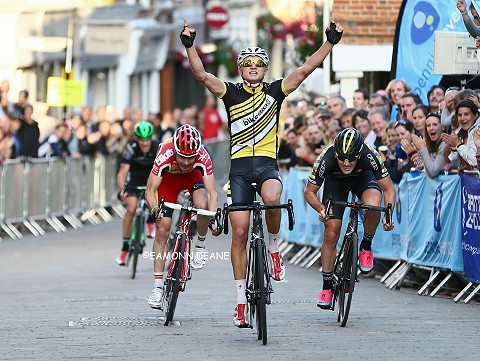 Al Murison (Bikeshed-Uex)) won the second Winchester Criterium, sprinting to victory on the cobbled High Street after a near race-long break. Murison got away with Andy Hargroves & Richard Mardle (Felt Colbornes-Hargroves RT), Jody Crawforth (Hargroves-Ridley RT) Chris McNamara (Pedal Heaven Colbornes RT) , Daniel Guest (Performance Cycles) & Joe Barry (Ride 24/7).