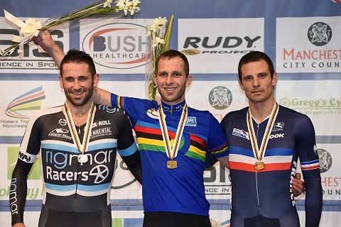 During fourteen hours at the Manchester Velodrome on Tuesday, twelve World titles were awarded to riders from around the World on Day 4 of the UCI World Masters Track Cycling Championships.