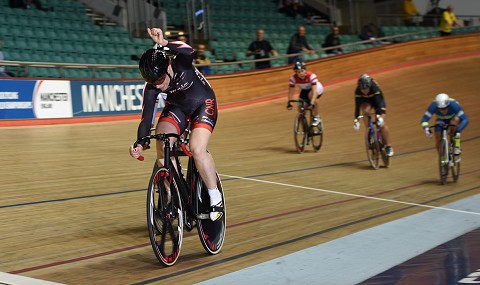 One of the nights big success stories for the British camp was the win by James Notley in the Mens 35-39 Points race. Two victories in the mid race sprints, and scoring points in five other sprints saw Notley climb up the overall classification for the race to lead it for the final half and hold on to that lead.